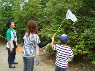 | 大阪府からお越しの大野様、とっても元気なお子様たちで、私もとても楽しかったです。待望のクワガタ、コクワガタのメスGET ハンミョウ、ちょうちょ、オニヤンマ、トカゲ、毛虫、ゾウムシ、ザリガニ、カエル、小魚、アメンボ、カメなどに出会えました。 |